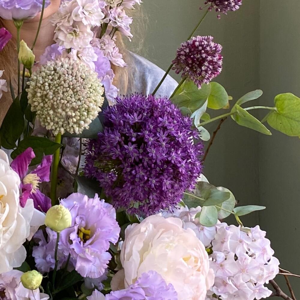 Лавандовый раф - Букет с пионами и луком