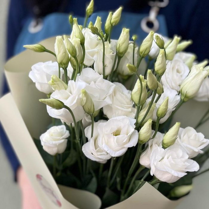 Эустома – 5 шт.Лента атласная – 1 шт.Упаковка матовая пленка – 1 шт.