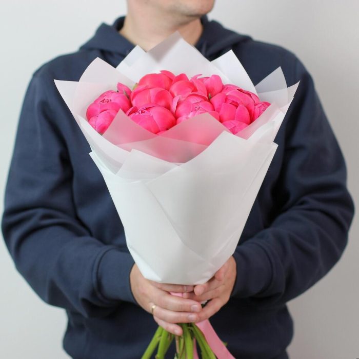 Лента атласная – 1 шт.Упаковка дизайнерская – 4 шт.Пион коралл шарм – 15 шт.