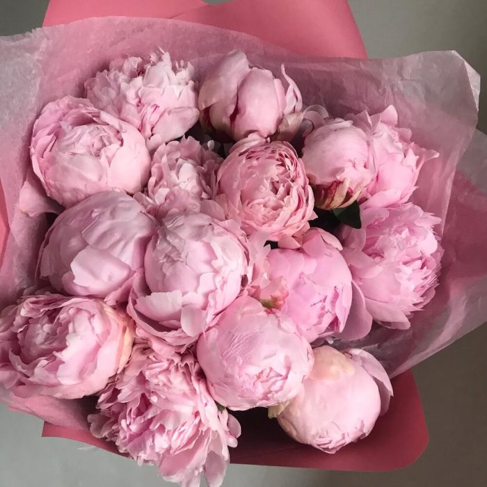 Лента – 2 шт.Упаковка дизайнерская – 3 шт.Пион розовый – 15 шт.Средство для продления жизни цветов – 1 шт.Инструкция по уходу – 1 шт.