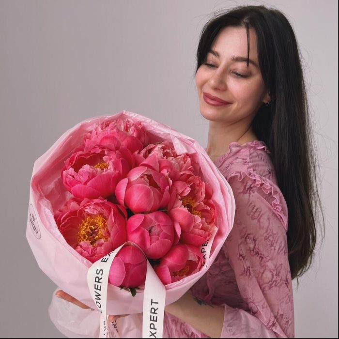 Упаковка дизайнерская – 1 шт.Пион коралл шарм – 9 шт.
