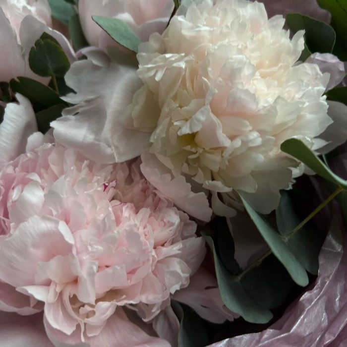 Букет из нежных пионов и эвкалипта