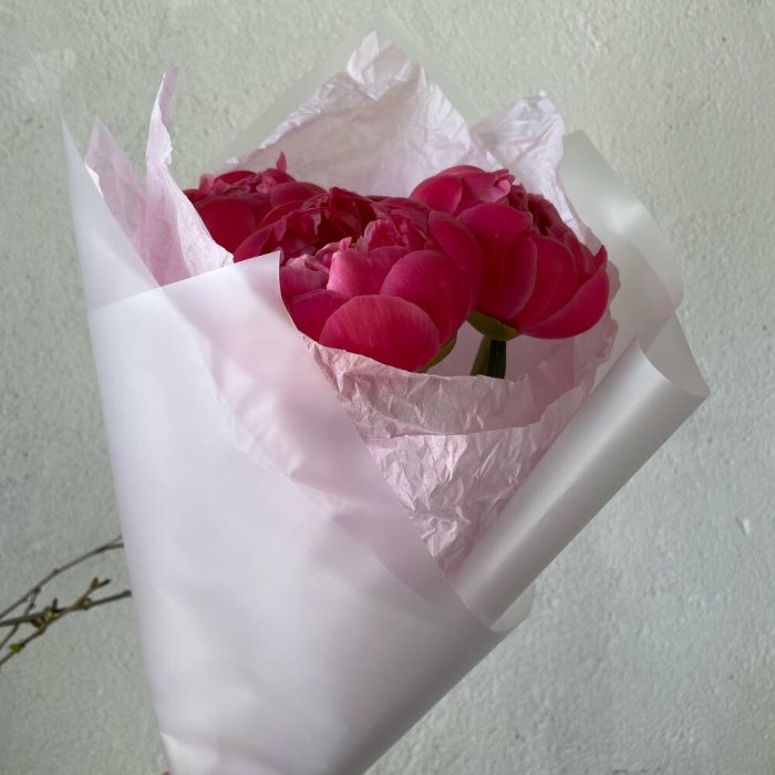Букет из 3х пионов. Сорт самый стойкий из всех пинов, цветок меняет цвет – волшебно!Самый желанный цветок всех девушек 100500% попадание.Состав комплекта :букет;мини-открытка;транспортировочная упаковка;инструкция по уходу.Повторы могут отличаться от фото, потому … Показать ещёчто цветы живой материал, их форма и оттенки изменчивы, потому точь в точь не всегда получается, так же нам важно, чтобы каждый букет был особенным и индивидуальным. Однако, мы обещаем сохранить состав максимально, выдержать цвет, форму и общее настроение букета.