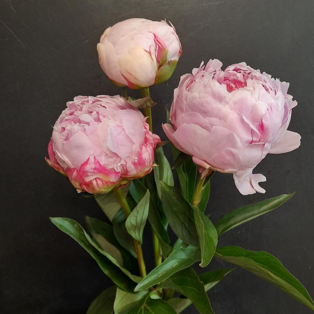 Минималистичный букет из 3 пионов сорта Sarah Bernardt
