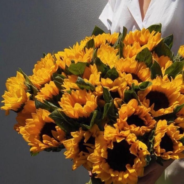 Подсолнух – 25 шт.Лента атласная – 2 шт.Открыточка с вашими пожеланиями – 1 шт.хорошее настроение – 100 шт.инструкция по уходу за цветами – 1 шт.коробка переноска – 1 шт.Кризал – 1 шт.