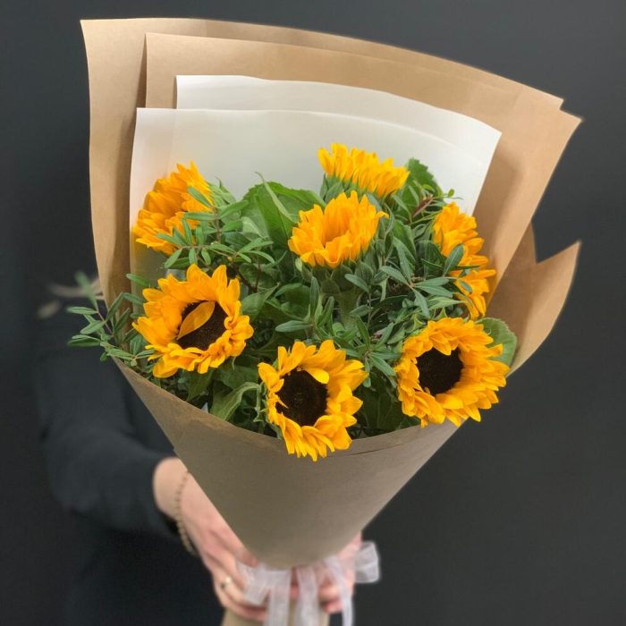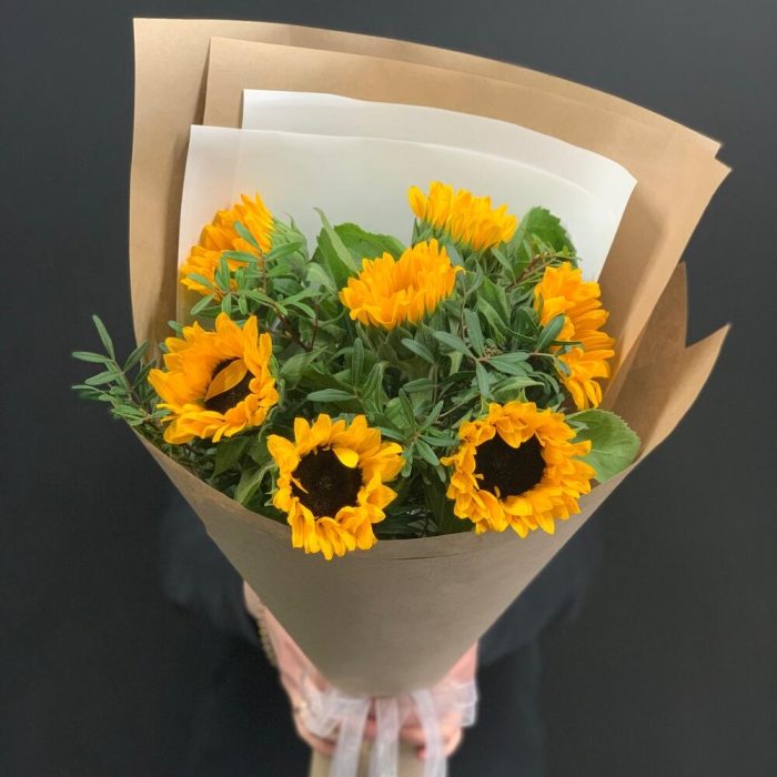 Букет из подсолнухов в крафте