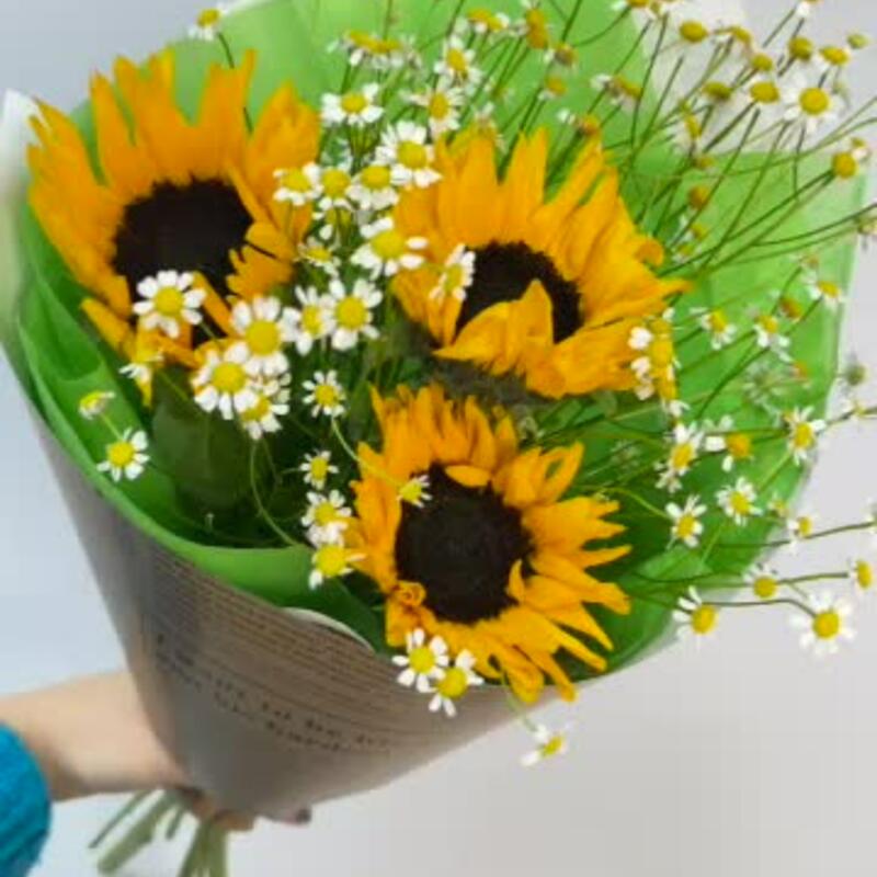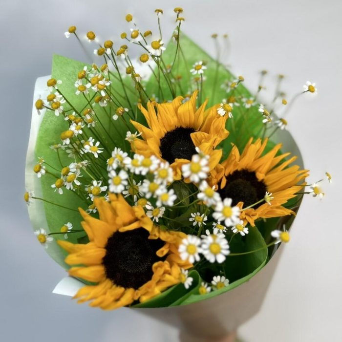 Подсолнух – 3 шт.Матрикария – 3 шт.Оформление – 1 шт.