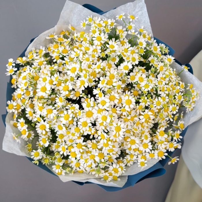 Упаковка – 1 шт.Ромашка кустовая – 21 шт.Аквапак – 1 шт.питательная смесь для срезанных цветов – 2 шт.