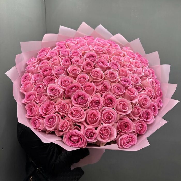 Лента атласная – 1 шт.Дизайнерская упаковка – 5 шт.розы эквадор (60 см) – 101 шт.