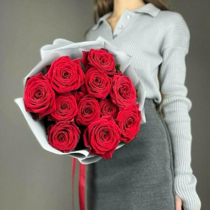 Роза красная – 11 шт. современное оформление – 1 шт.