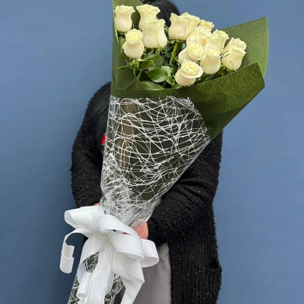 Нежный классический букет из роз сорта Мондиаль станет замечательным подарком вашим близким по поводу и без