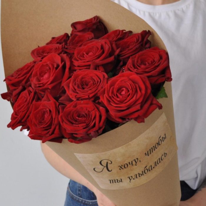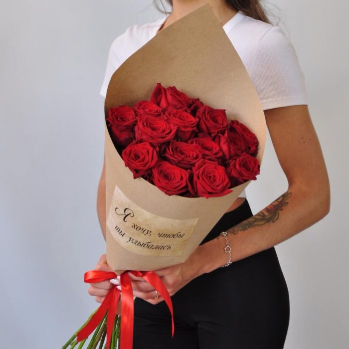 15 роз 60 см в крафте с наклейкой