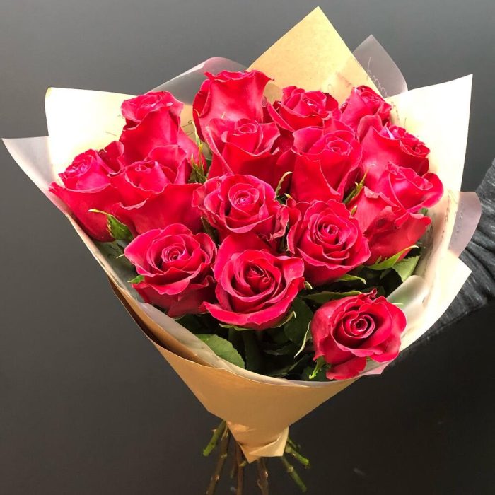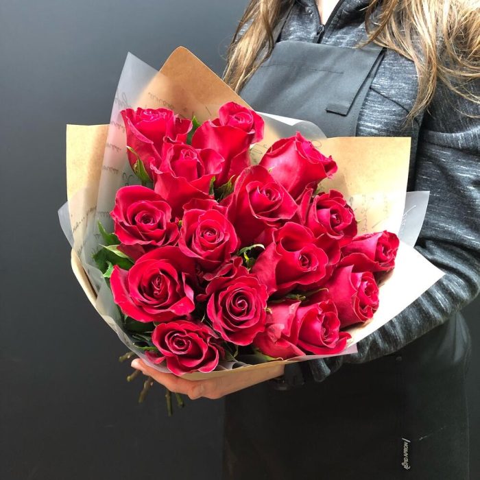 Роза Эквадор – 15 шт.Крафт – 1 шт.
