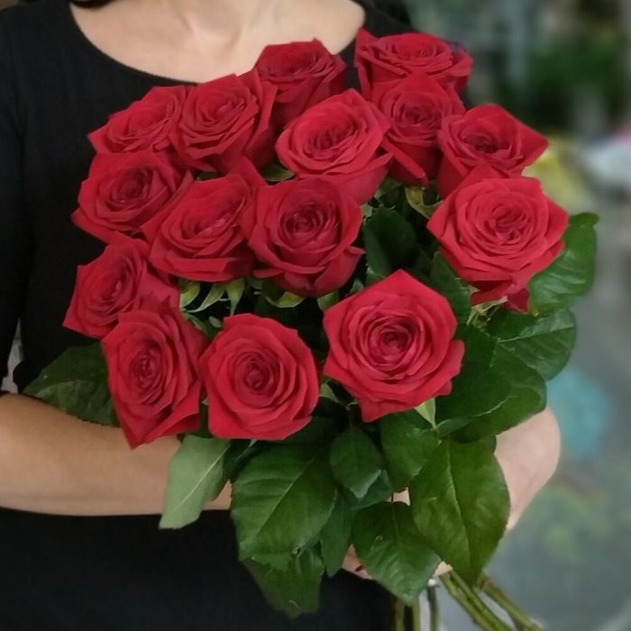 Метки: 15 роз, Красные розы, от 2000 до 3000 руб, Роза 50 см