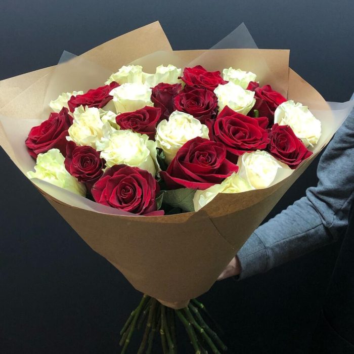 Роза Эквадор – 25 шт.Крафт – 1 шт.