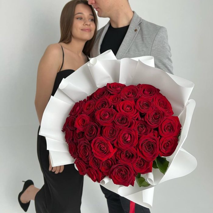 39 длинных красных роз