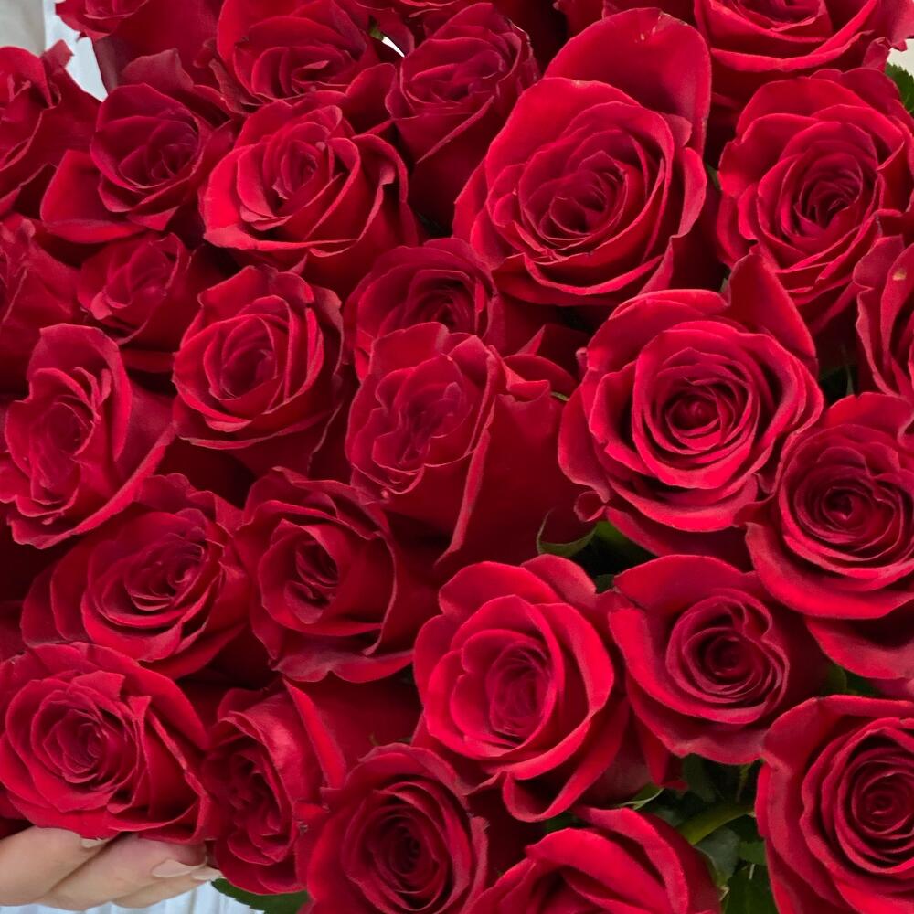 Роза эквадор 50 см – 51 шт.атласная красная лента – 1 шт.