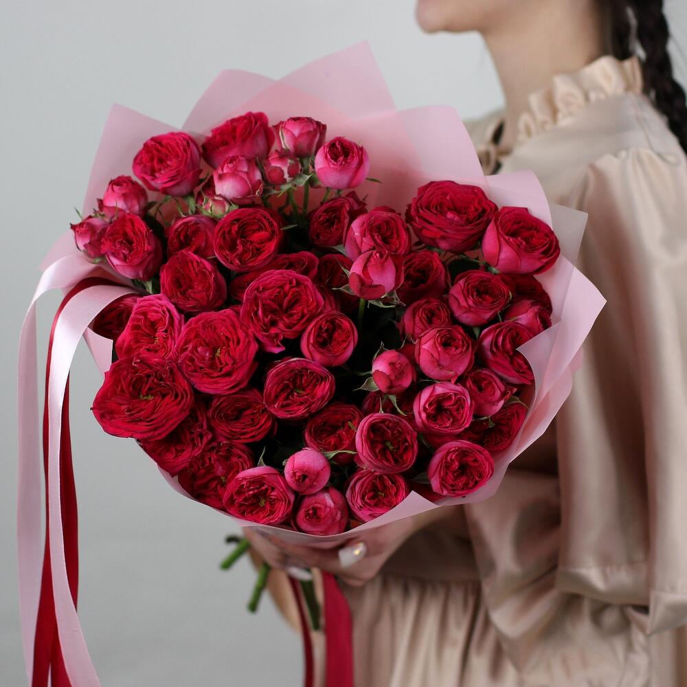 9 красных кустовых пионовидных роз Роял трендсеттер