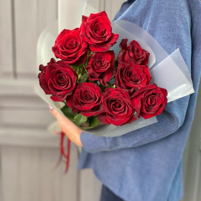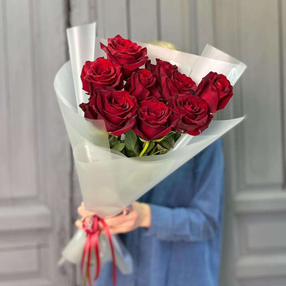 9 Красных роз 50 см