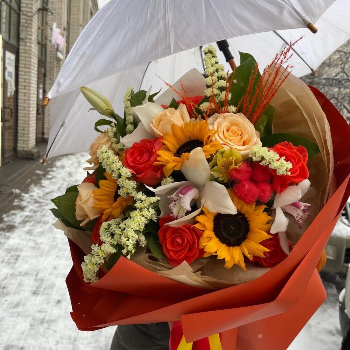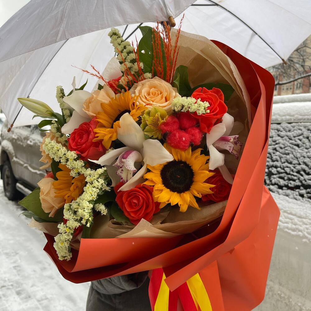 Категорий: Альстромерии, Орхидеи, Подсолнухи, Розы, Сухоцвет