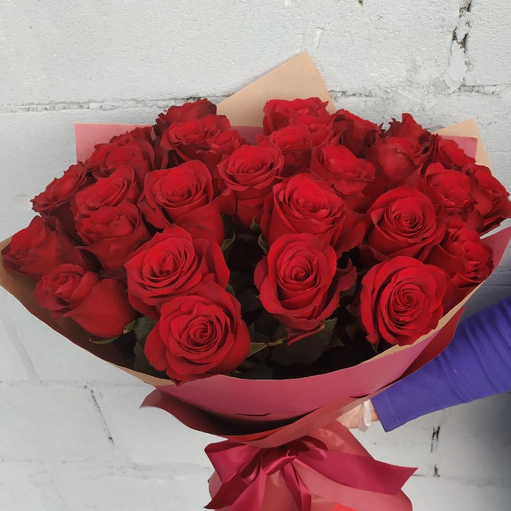 Роза – 31 шт.Упаковка дизайнерская – 1 шт.Лента атласная – 1 шт.