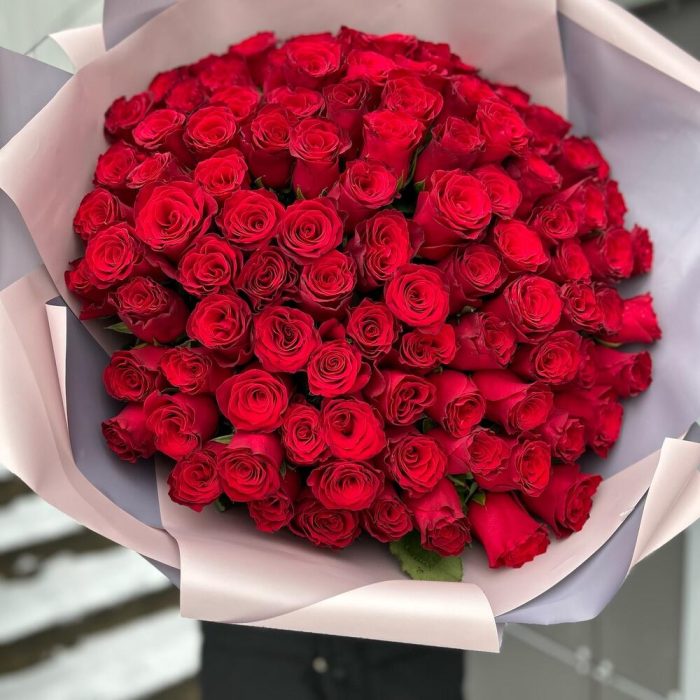 Красная роза – 101 шт. декоративная упаковка – 1 шт.