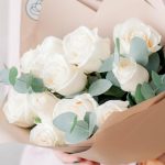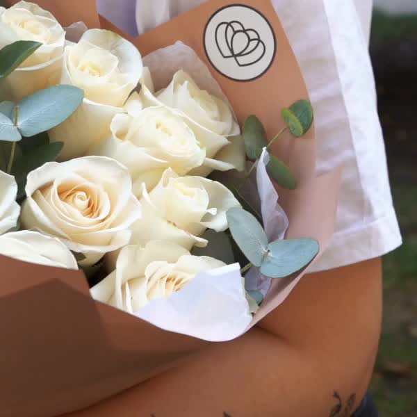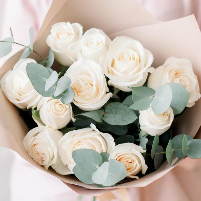 Эвкалипт – 3 шт.белые розы (эквадор) 50 см vendela – 11 шт.