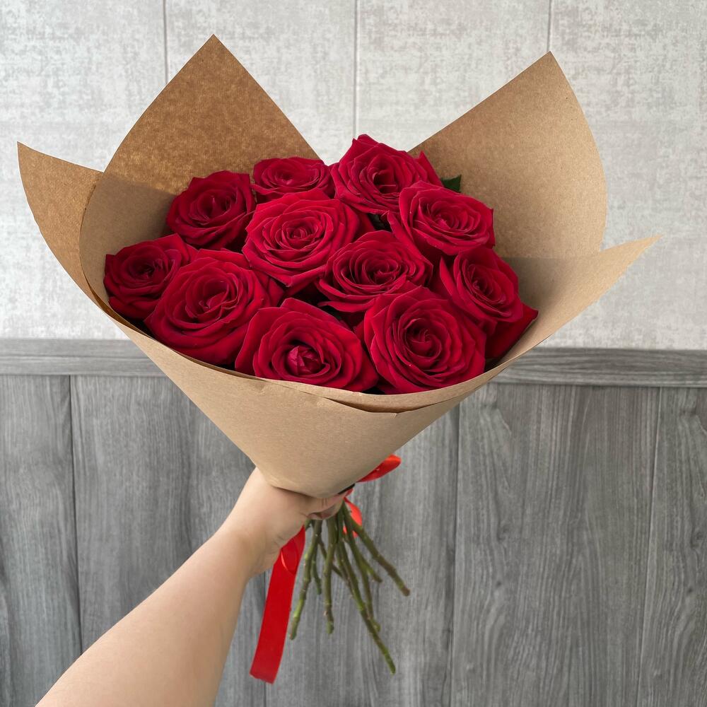 Букет из 11 красных роз 35-40 см (Кения) в стильной упаковке