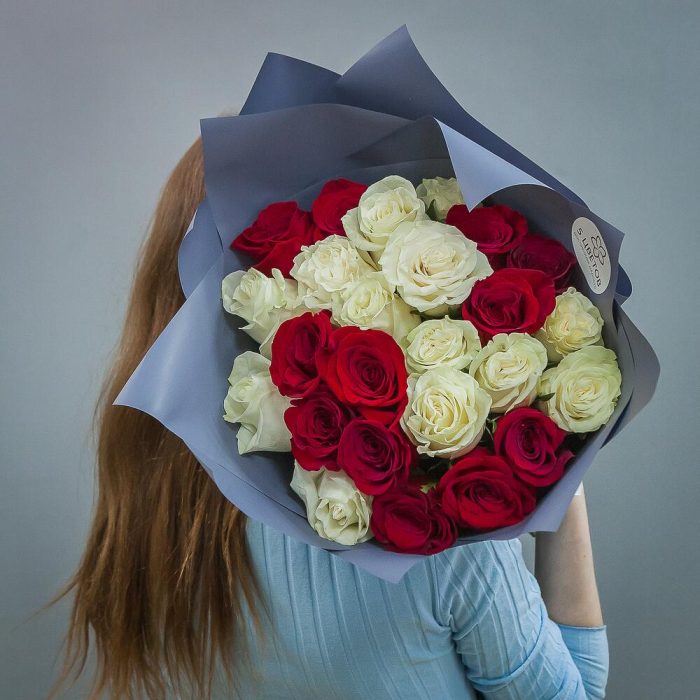Букет из 25 красных и белых роз