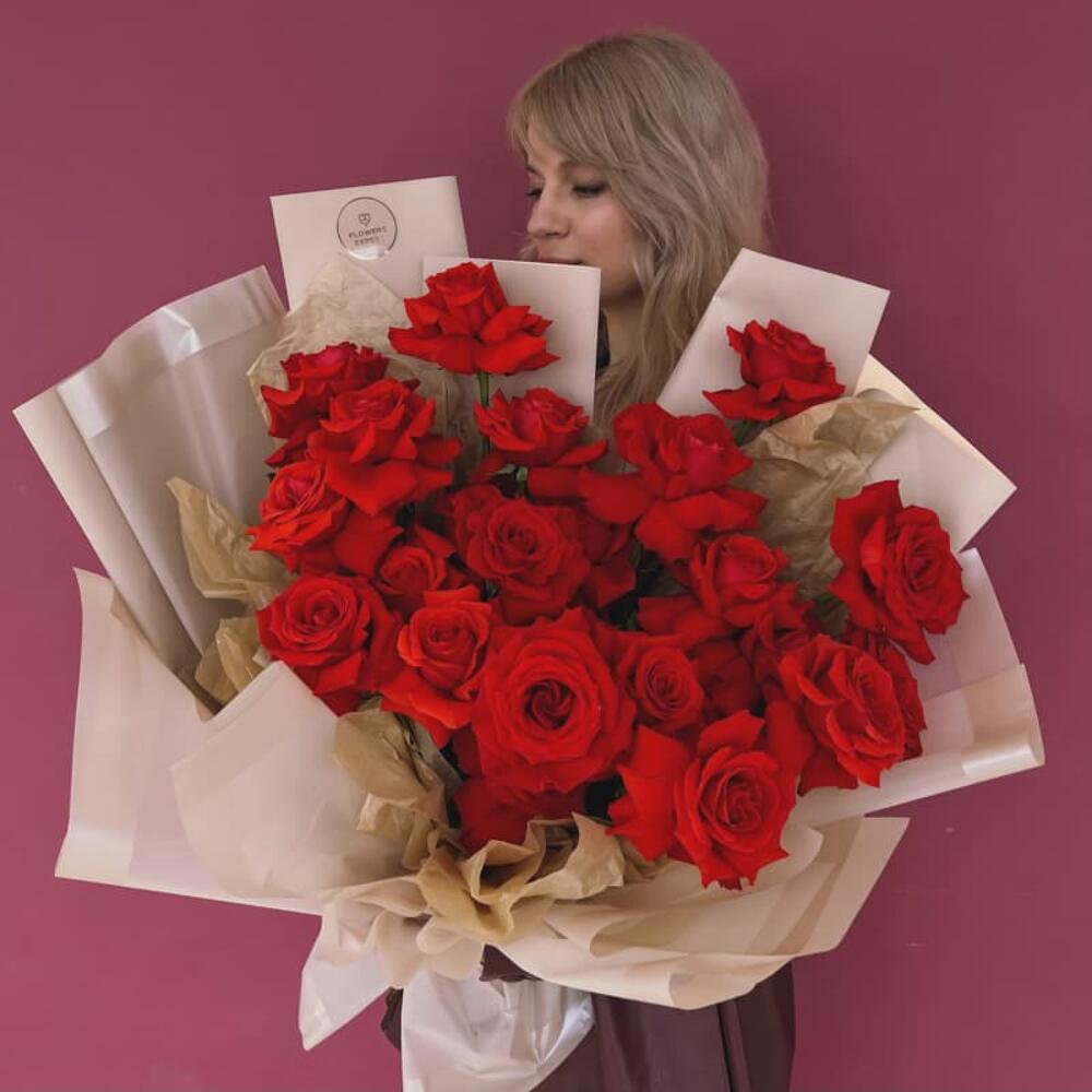Букет из 19 красных роз. Букет 115 ALMOND ROSES