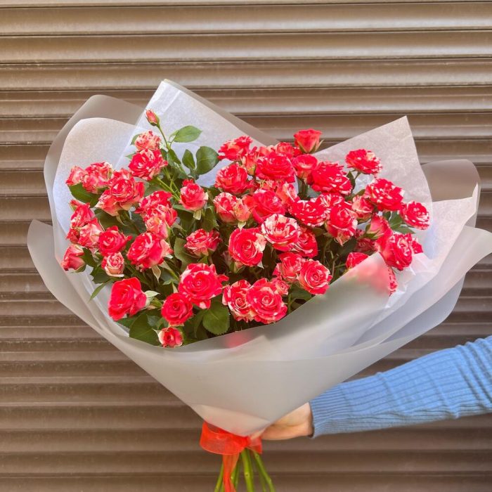 Тишью – 2 шт.Пленка матовая – 2 шт.фаервокс роза кустовая – 9 шт.