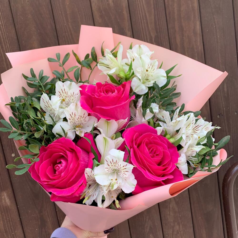 Букет из альстромерий,роз, зелени Маркиза