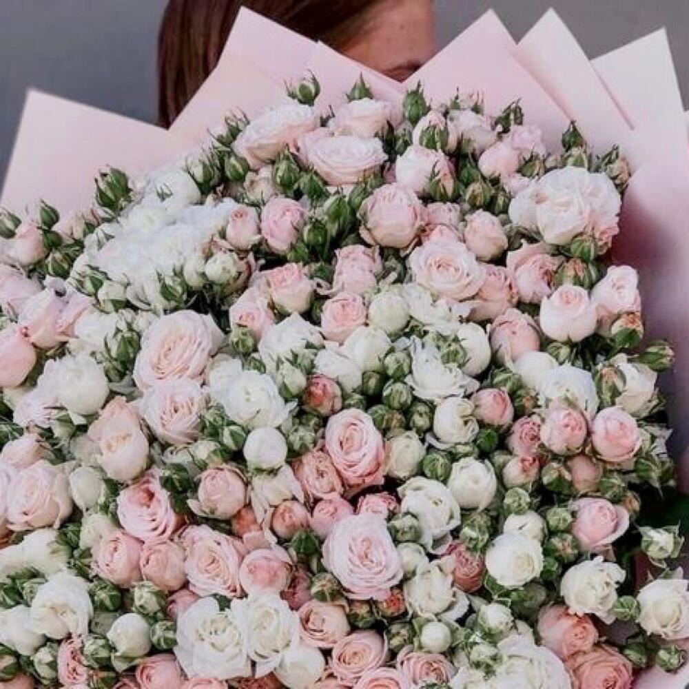 роза кустовая ассорти – 101 шт.Упаковка дизайнерская – 2 шт.Лента атласная – 2 шт.Открыточка с вашими пожеланиями – 1 шт.хорошее настроение – 100 шт.инструкция по уходу за цветами – 1 шт.коробка переноска – 1 шт.Кризал – 1 шт.