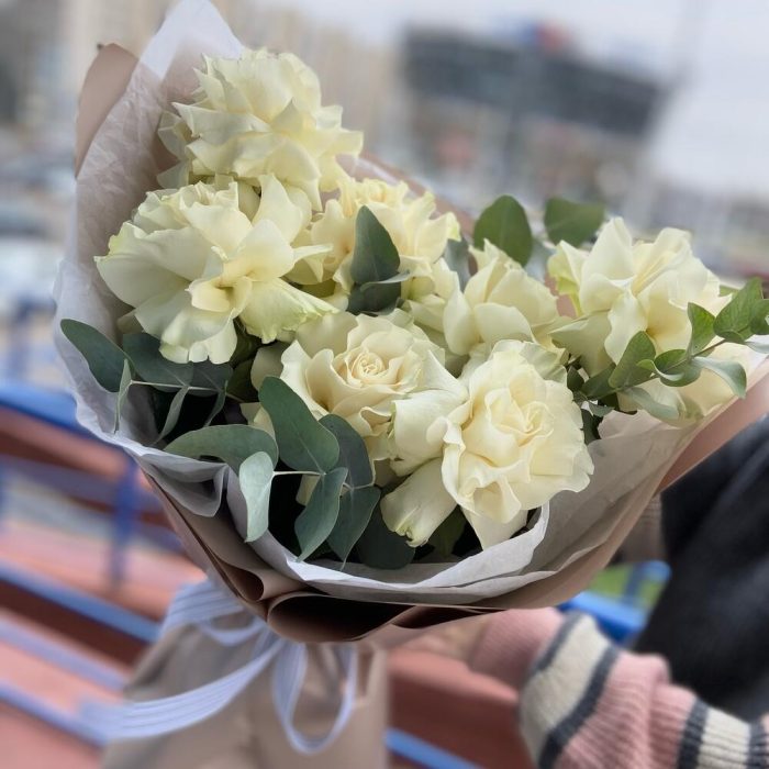 Эвкалипт – 5 шт. Упаковка дизайнерская – 1 шт. Французская роза – 7 шт.