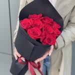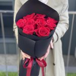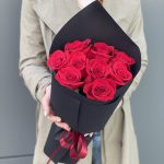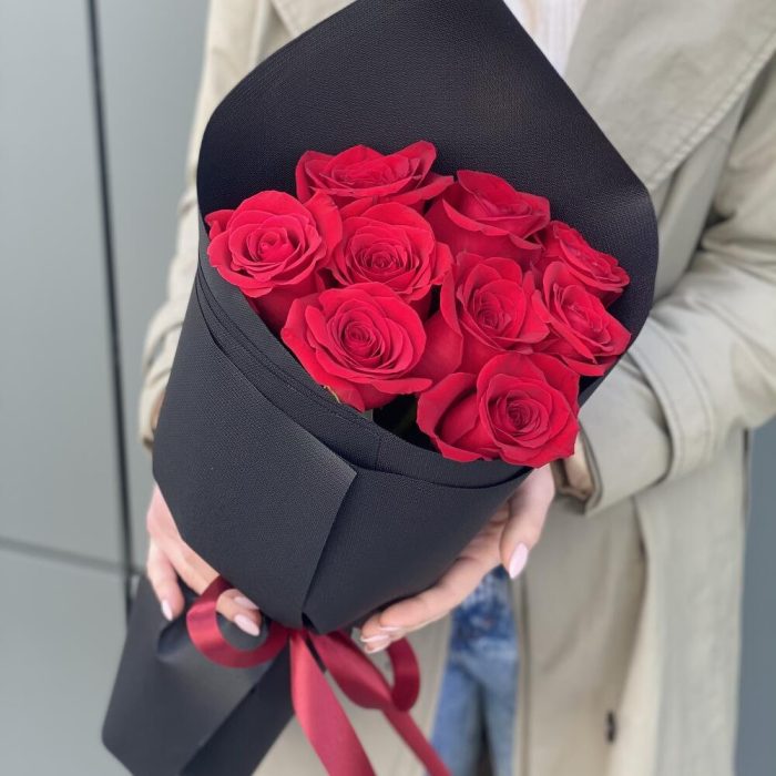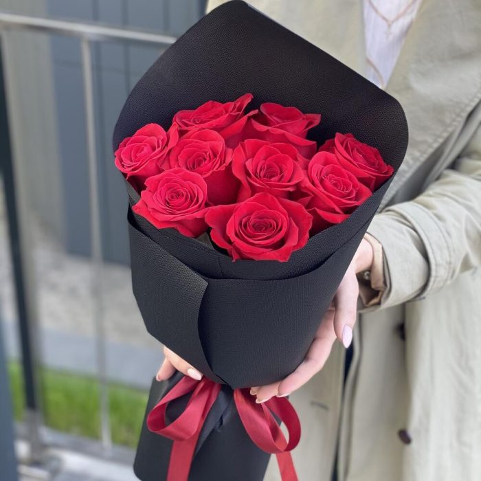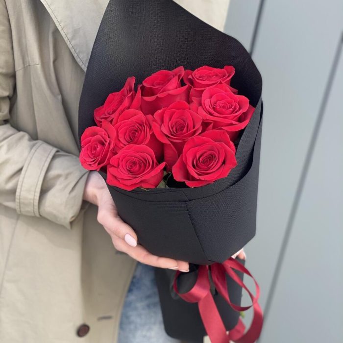 красная роза фридом – 9 шт. Оформление – 1 шт.