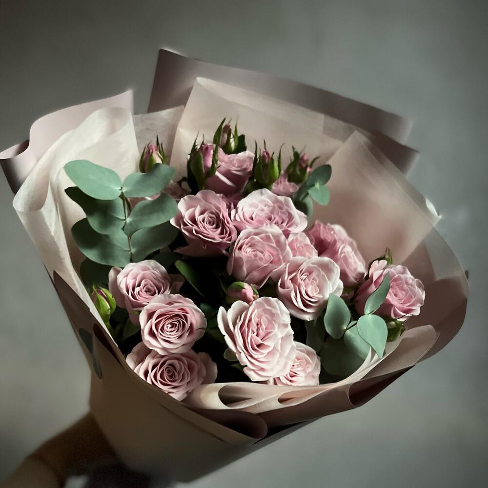 Букет из кустовой ароматной розы и эвкалипта