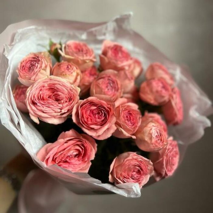 Кустовая пионовидная роза – 5 шт.декоративная укпаковка – 1 шт.Атласная лента – 1 шт.