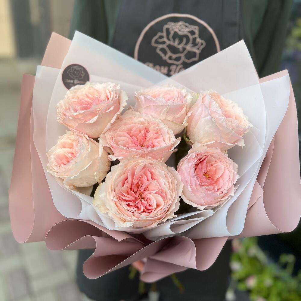 пионовидная роза tsumugi – 7 шт.декоративная упаковка – 1 шт.Атласная лента – 1 шт.