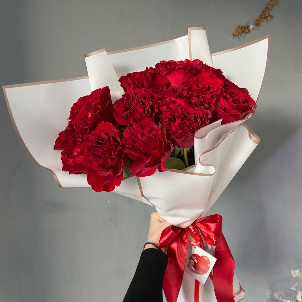 Букет из пионовидных красных роз «Рафаэлло»