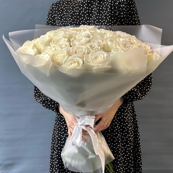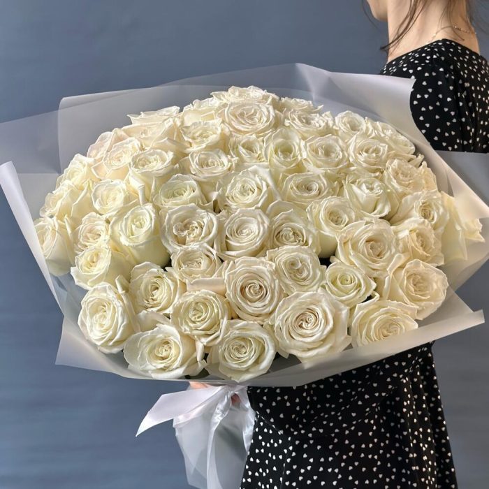 роза пионовидная плая бланка – 49 шт.матовая прозрачная корейская пленка – 3 шт.Лента атласная – 1 шт.