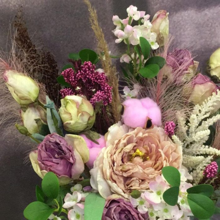 Букет из сухоцветов в розово-лиловых тонах