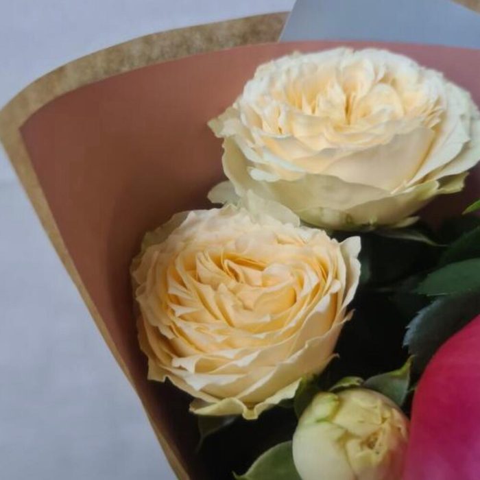 Пион Коралл Шарм (Coral Charm) – 1 шт.Роза кустовая – 1 шт.