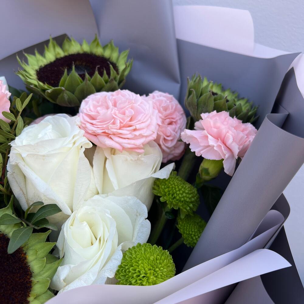 Категорий: Гвоздики, Кустовые розы, Подсолнухи, Розы, Хризантемы