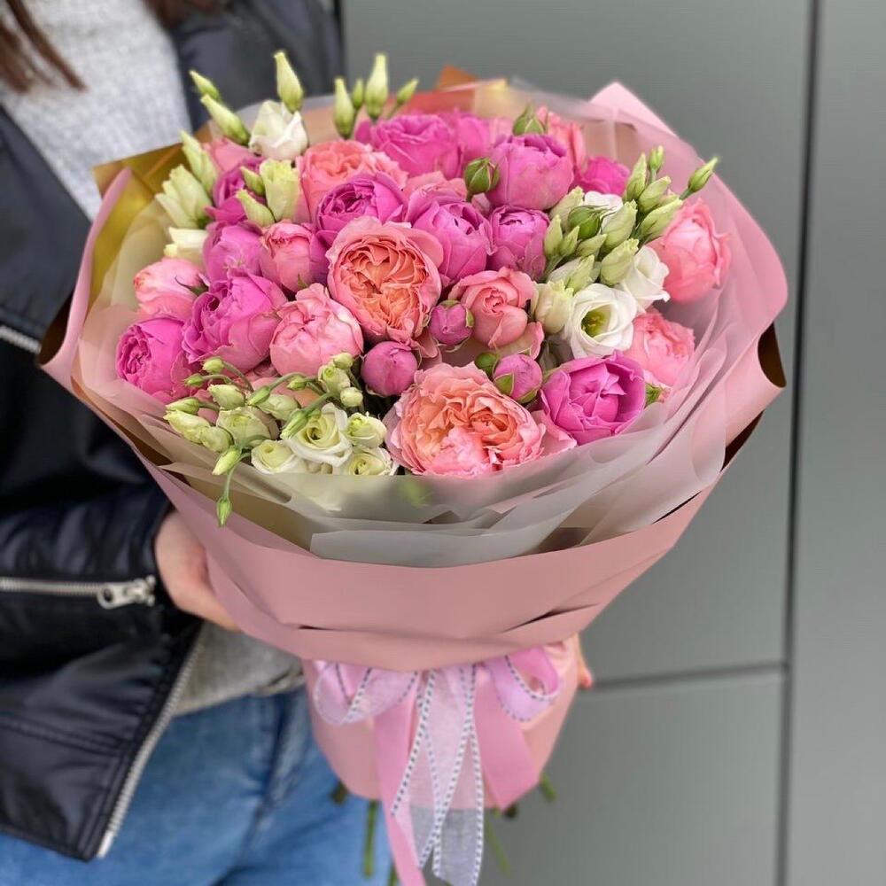 Пионовидная кустовая роза – 8 шт.Лизиантус – 3 шт.