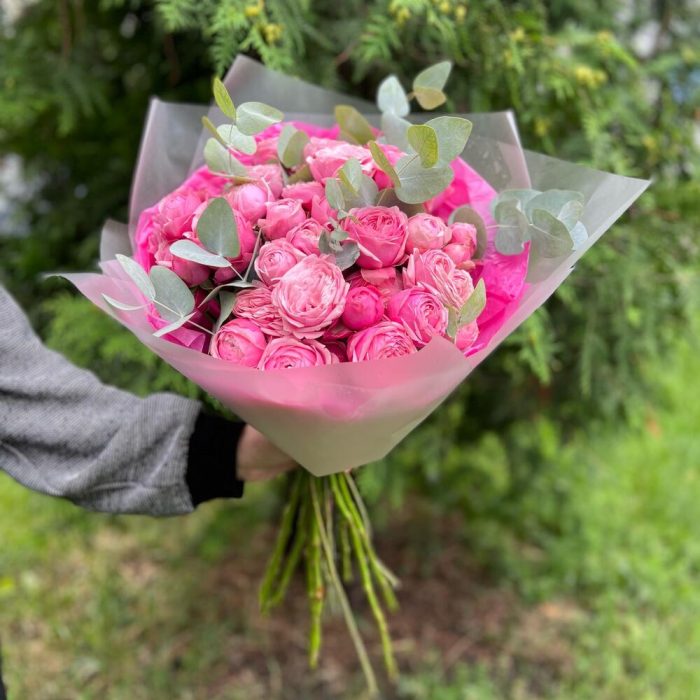 Букет пион роз с эвкалиптом (СБ 003)