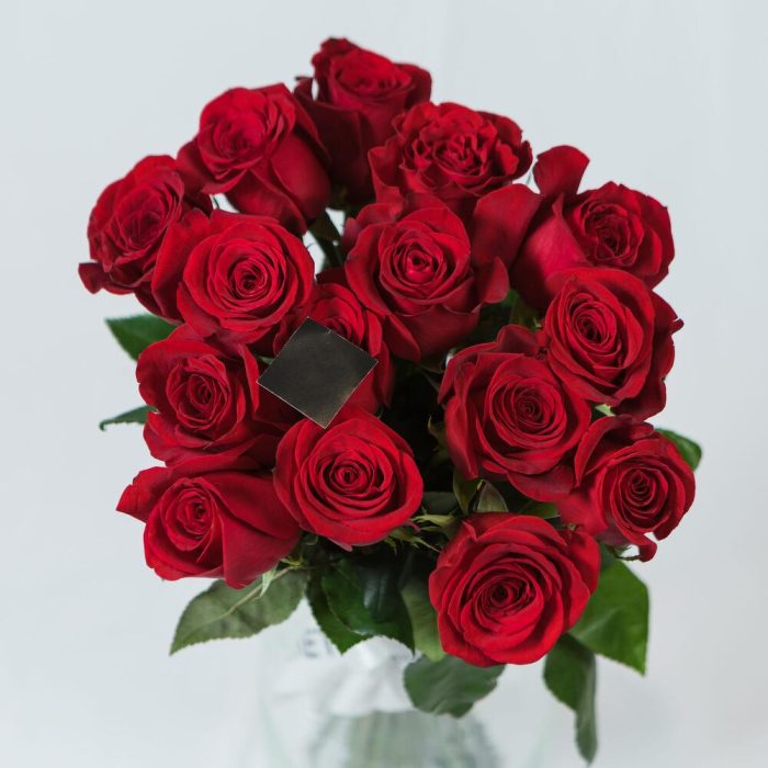Роза Эквадор – 15 шт.Пленка прозрачная – 1 шт.Лента атласная – 1 шт.