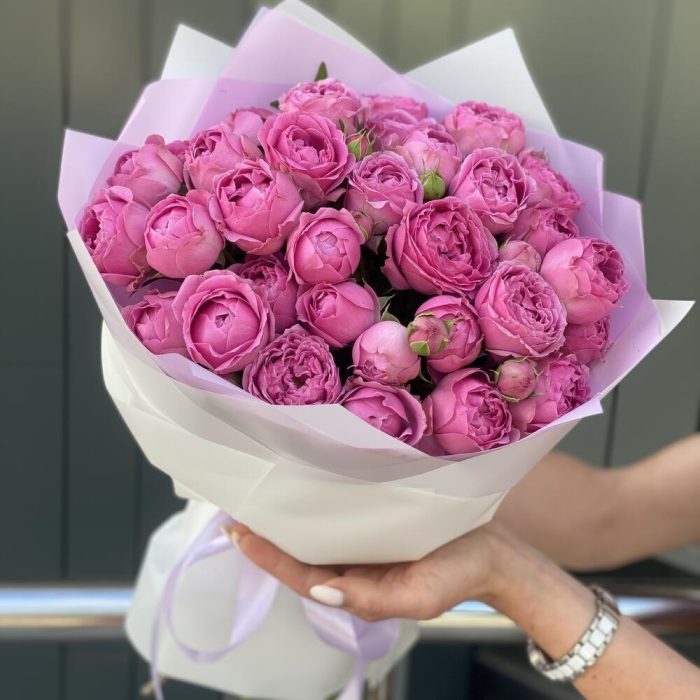 Букет из кустовых пионовидных роз в оформлении!