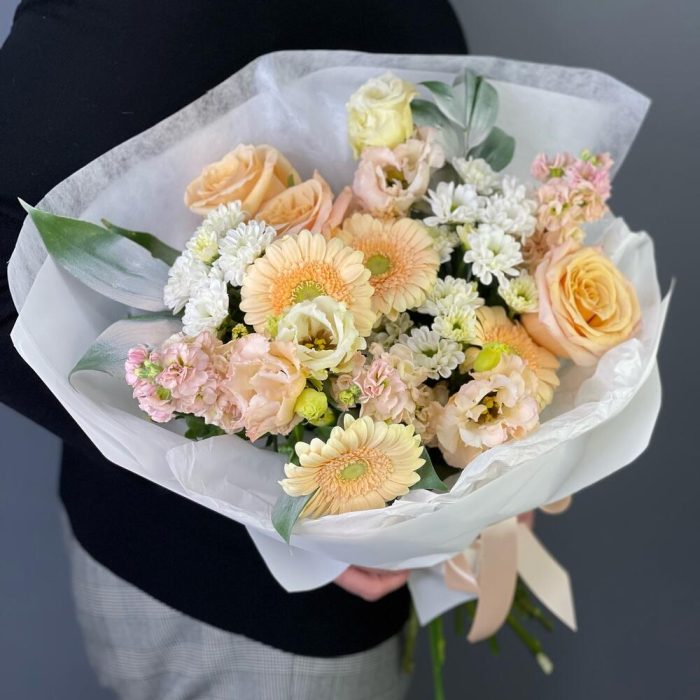 Букет с нежной маттиолой “Гоголь-моголь Абрикос”