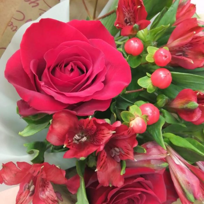 Букет с розами и альстромерией