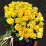 желтые розы – 51 шт. Атласная лента – 1 шт.